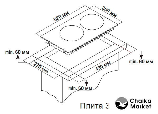 | Подробная информация о конфорках | 3000 Вт1000 Вт |