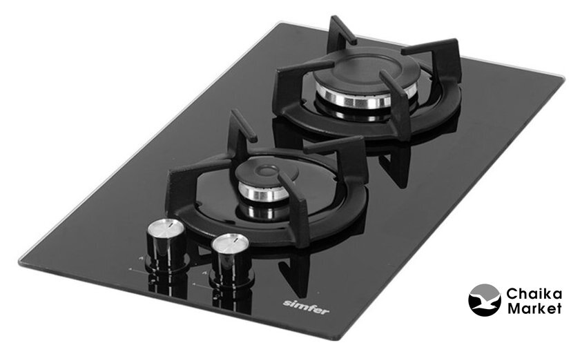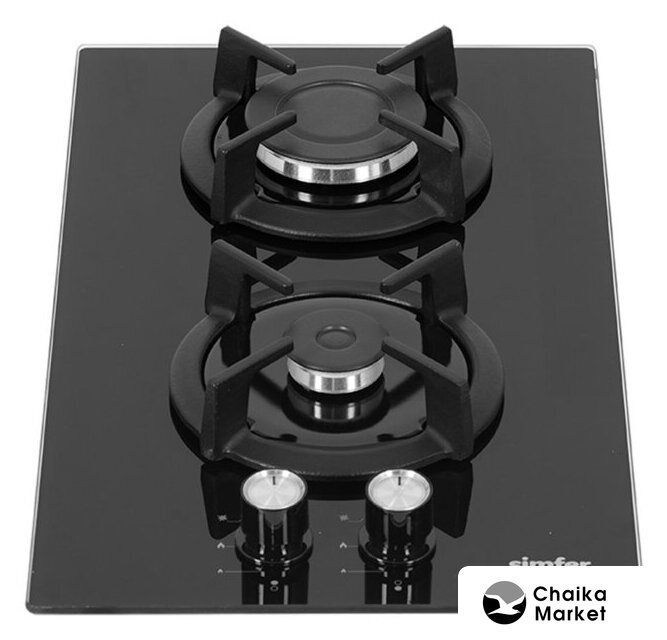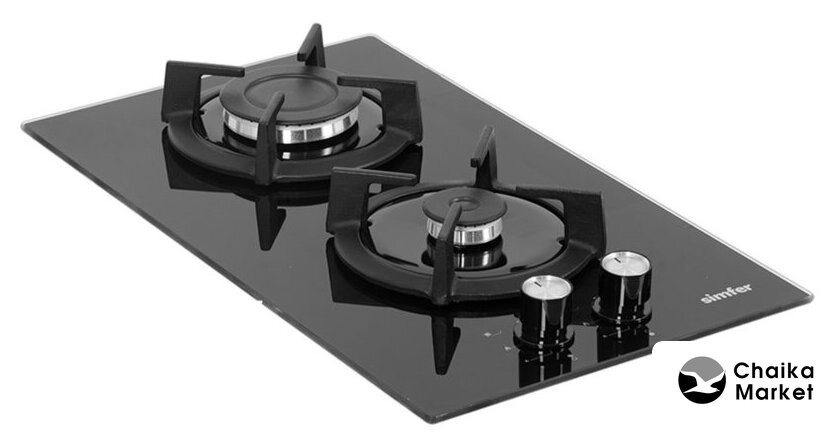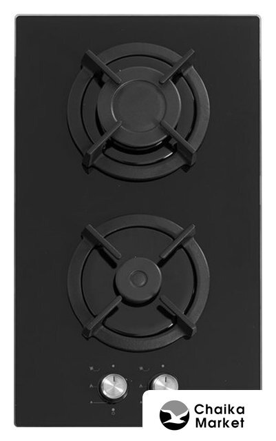 газовая на 2 конфорки, закаленное стекло, мощность: 3500 Вт, автоматический электроподжиг, газ-контроль, решетки: чугун, независимая установка, размеры (ШхГ): 30x53 см