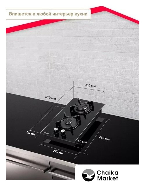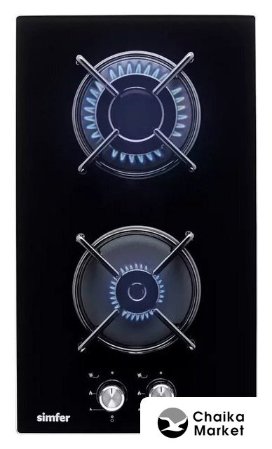 газовая на 2 конфорки, нержавеющая сталь, мощность: 3900 Вт, автоматический электроподжиг, решетки: чугун, независимая установка, размеры (ШхГ): 30x51 см