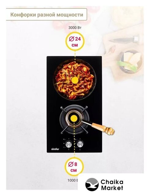 | Подробная информация о конфорках | 3000 Вт1000 Вт |