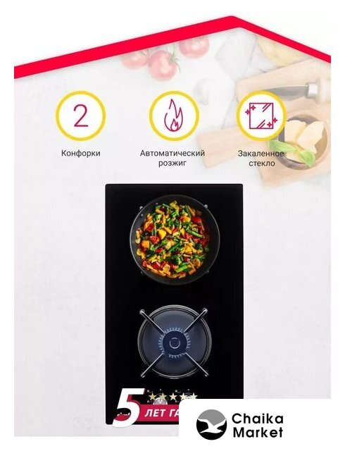 газовая на 2 конфорки, эмалированная сталь, автоматический электроподжиг, газ-контроль, решетки: чугун, независимая установка, размеры (ШхГ): 30x53 см