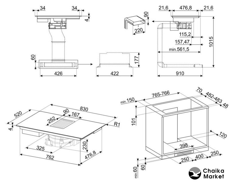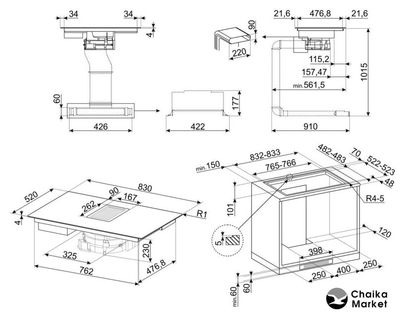 Общая мощность | 7 545 Вт (суммарная с вытяжкой) |