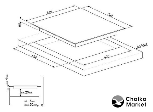 индукционная на 4 конфорки, cтеклокерамика, мощность: 7400 Вт, независимая установка, размеры (ШхГ): 60x51 см