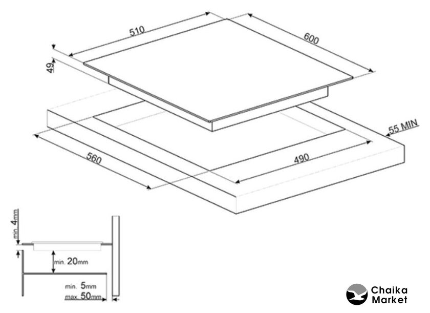 индукционная на 5 конфорок, cтеклокерамика, независимая установка, размеры (ШхГ): 90x52 см