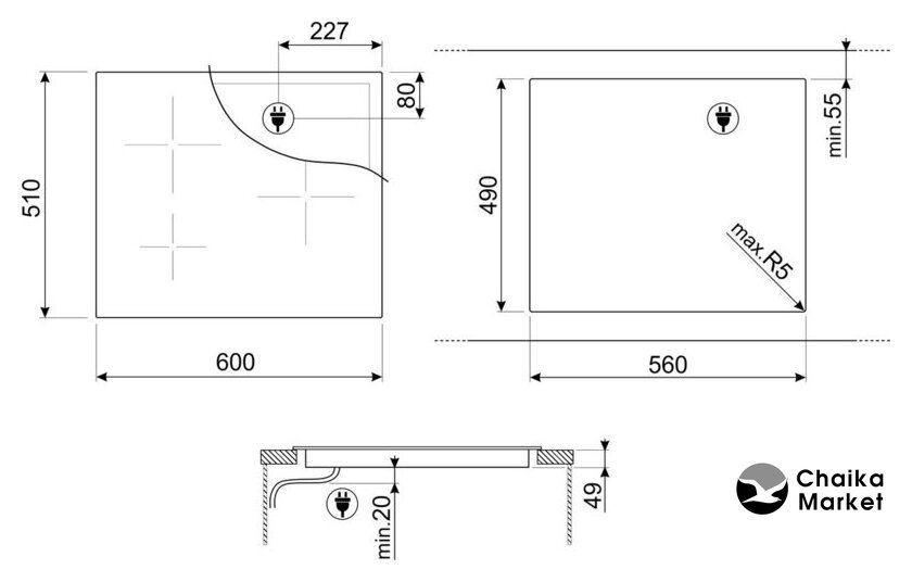 индукционная на 5 конфорок, cтеклокерамика, мощность: 7400 Вт, независимая установка, размеры (ШхГ): 81.6x52.7 см