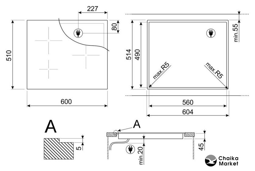 индукционная на 5 конфорок, cтеклокерамика, мощность: 7350 Вт, независимая установка, размеры (ШхГ): 78x52 см