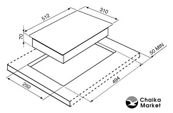 индукционная на 4 конфорки, закаленное стекло, мощность: 7400 Вт, независимая установка, размеры (ШхГ): 82x52 см