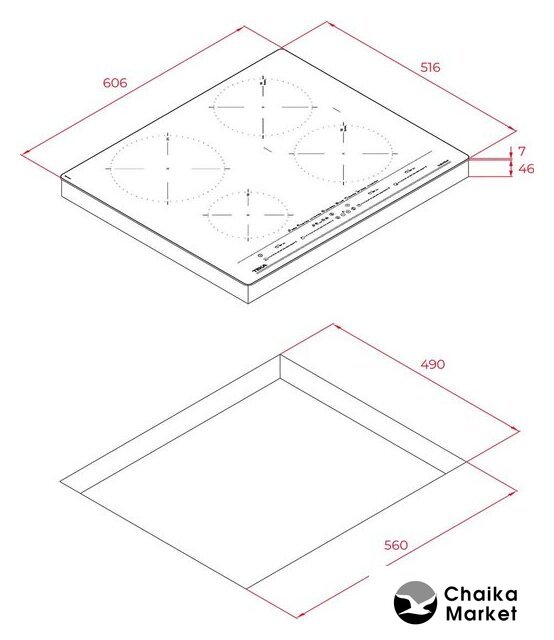 индукционная на 4 конфорки, cтеклокерамика, мощность: 7350 Вт, независимая установка, размеры (ШхГ): 57.6x51.6 см