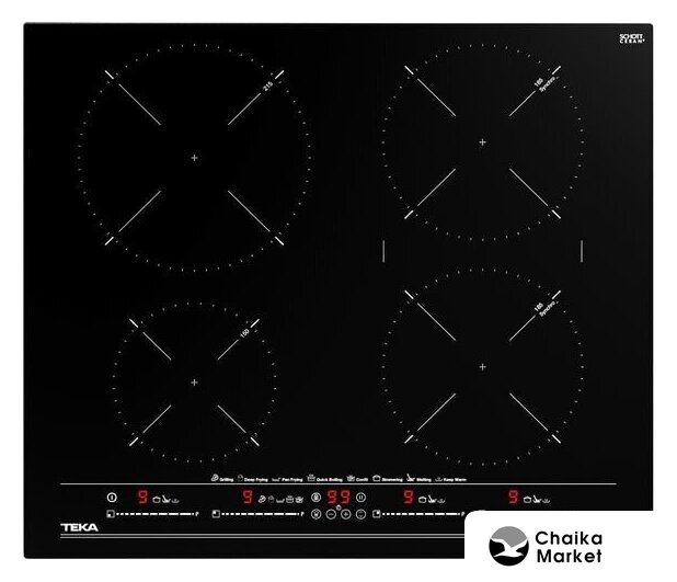 индукционная на 4 конфорки, cтеклокерамика, мощность: 7390 Вт, автоматика закипания, независимая установка, размеры (ШхГ): 59.5x52 см
