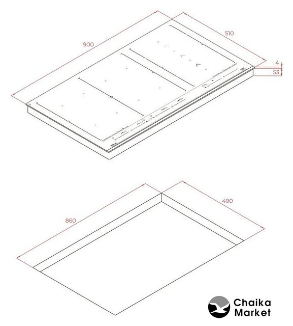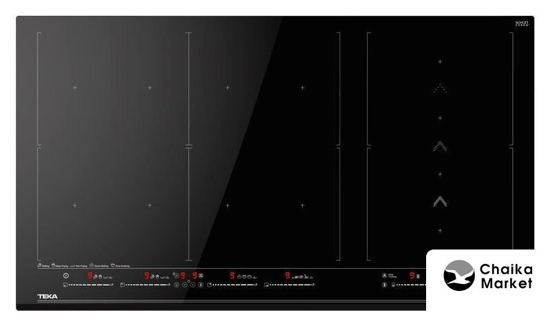индукционная на 5 конфорок, cтеклокерамика, независимая установка, размеры (ШхГ): 90x52 см