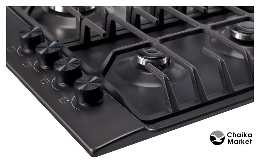 газовая на 4 конфорки, закаленное стекло, мощность: 8800 Вт, автоматический электроподжиг, газ-контроль, решетки: чугун, независимая установка