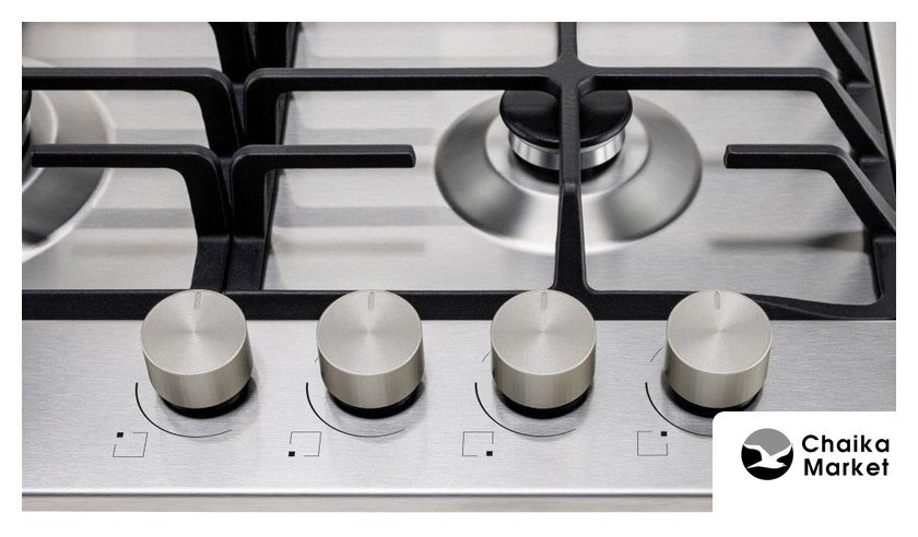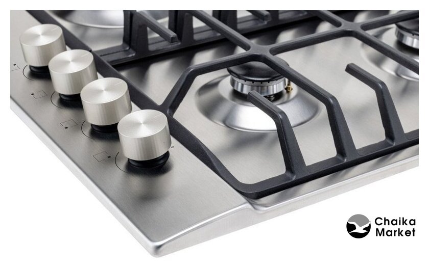газовая на 4 конфорки, нержавеющая сталь, мощность: 8300 Вт, автоматический электроподжиг, газ-контроль, решетки: чугун, размеры (ШхГ): 58.5x55 см