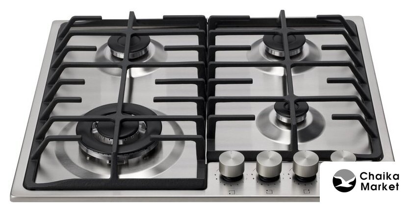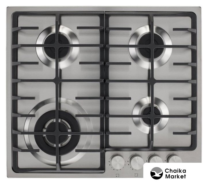 газовая на 4 конфорки, нержавеющая сталь, мощность: 7800 Вт, автоматический электроподжиг, газ-контроль, решетки: чугун, независимая установка, размеры (ШхГ): 58.2x52 см