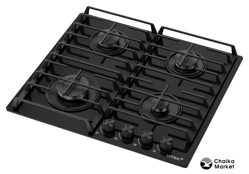 газовая на 4 конфорки, закаленное стекло, автоматический электроподжиг, газ-контроль, решетки: чугун, независимая установка