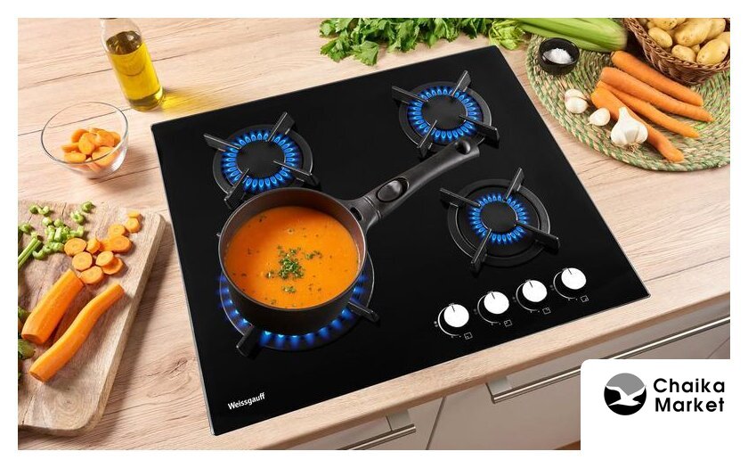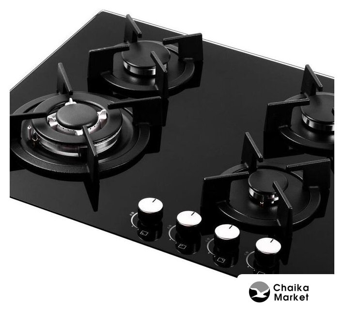 газовая на 4 конфорки, закаленное стекло, мощность: 7600 Вт, автоматический электроподжиг, газ-контроль, решетки: чугун, независимая установка, размеры (ШхГ): 60x52.5 см