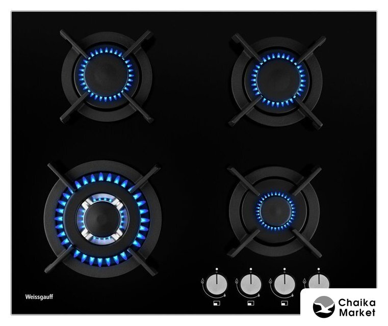 газовая на 4 конфорки, закаленное стекло, мощность: 8000 Вт, автоматический электроподжиг, газ-контроль, решетки: чугун, независимая установка, размеры (ШхГ): 60x52 см