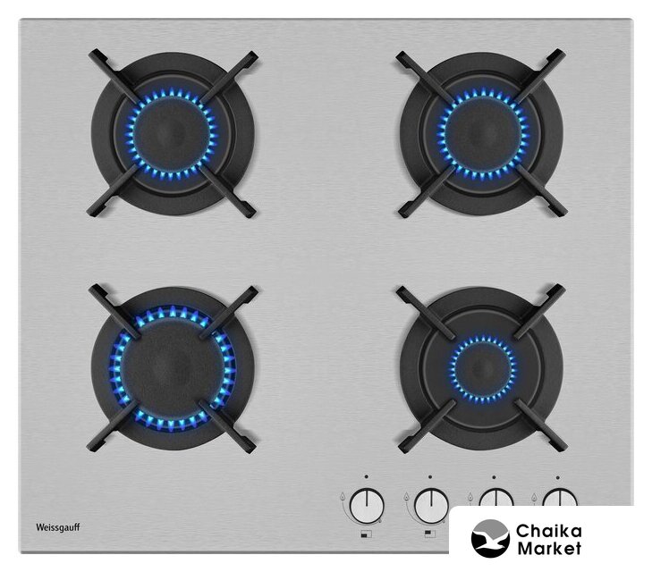 газовая на 4 конфорки, нержавеющая сталь, мощность: 7200 Вт, автоматический электроподжиг, газ-контроль, решетки: чугун, независимая установка, размеры (ШхГ): 59x51.5 см