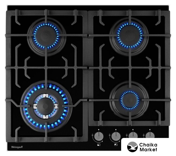 газовая на 4 конфорки, закаленное стекло, мощность: 7700 Вт, автоматический электроподжиг, газ-контроль, решетки: чугун, независимая установка, размеры (ШхГ): 60x52.5 см