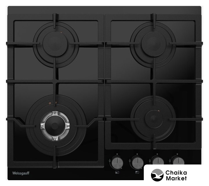 газовая на 4 конфорки, закаленное стекло, мощность: 7000 Вт, автоматический электроподжиг, газ-контроль, решетки: чугун, независимая установка