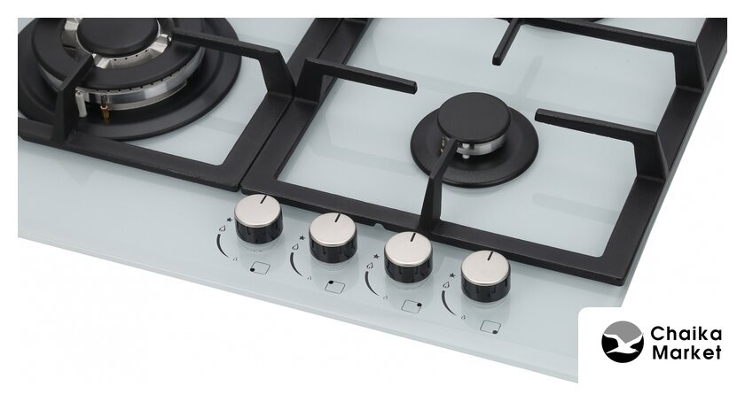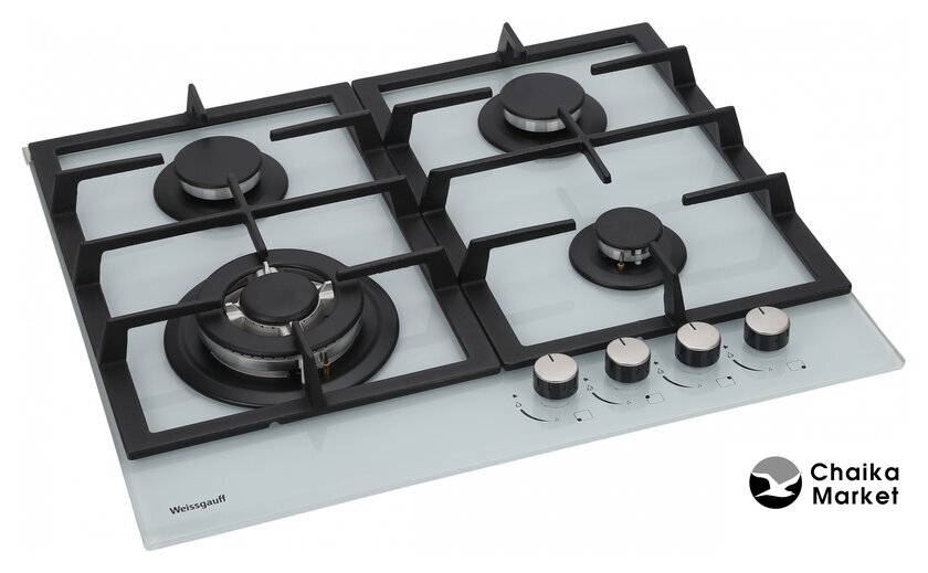газовая на 3 конфорки, закаленное стекло, мощность: 6400 Вт, автоматический электроподжиг, газ-контроль, решетки: чугун, независимая установка, размеры (ШхГ): 54x54 см