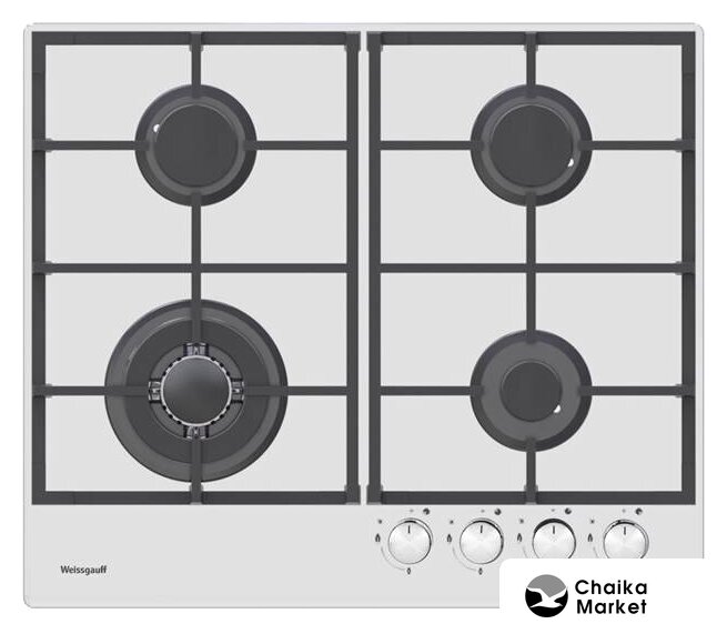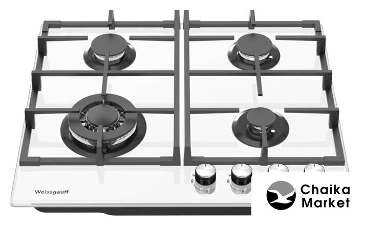 газовая на 4 конфорки, закаленное стекло, мощность: 7000 Вт, автоматический электроподжиг, газ-контроль, решетки: чугун, независимая установка