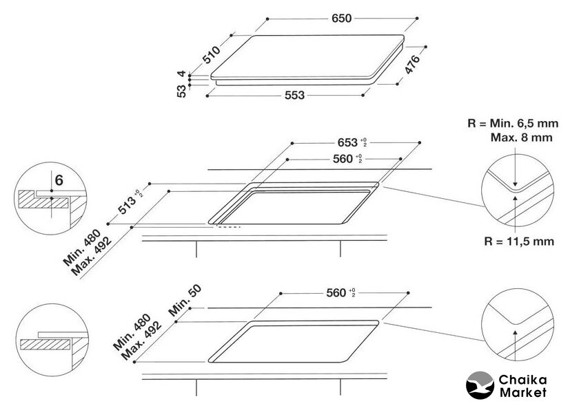 индукционная на 4 конфорки, cтеклокерамика, мощность: 7200 Вт, автоматика закипания, независимая установка, размеры (ШхГ): 60x51 см