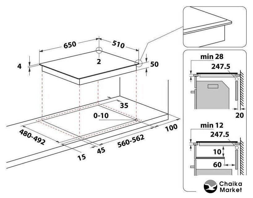 индукционная на 4 конфорки, cтеклокерамика, мощность: 7400 Вт, независимая установка, размеры (ШхГ): 60.6x52.7 см