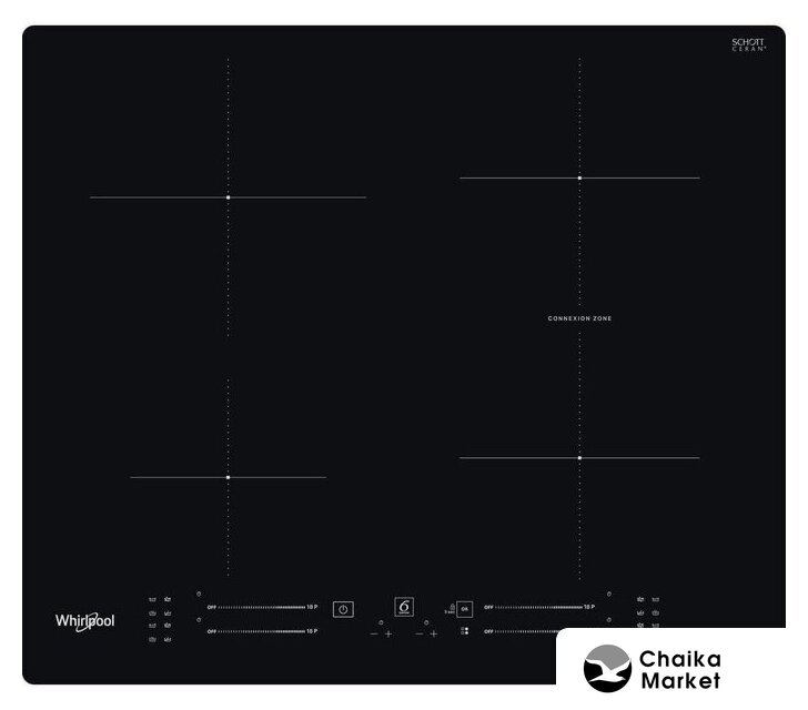 индукционная на 4 конфорки, закаленное стекло, мощность: 6000 Вт, независимая установка, размеры (ШхГ): 59x52 см