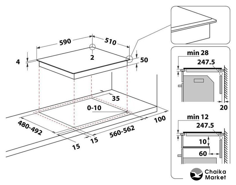 индукционная на 4 конфорки, cтеклокерамика, мощность: 7200 Вт, автоматика закипания, независимая установка, размеры (ШхГ): 59x51 см