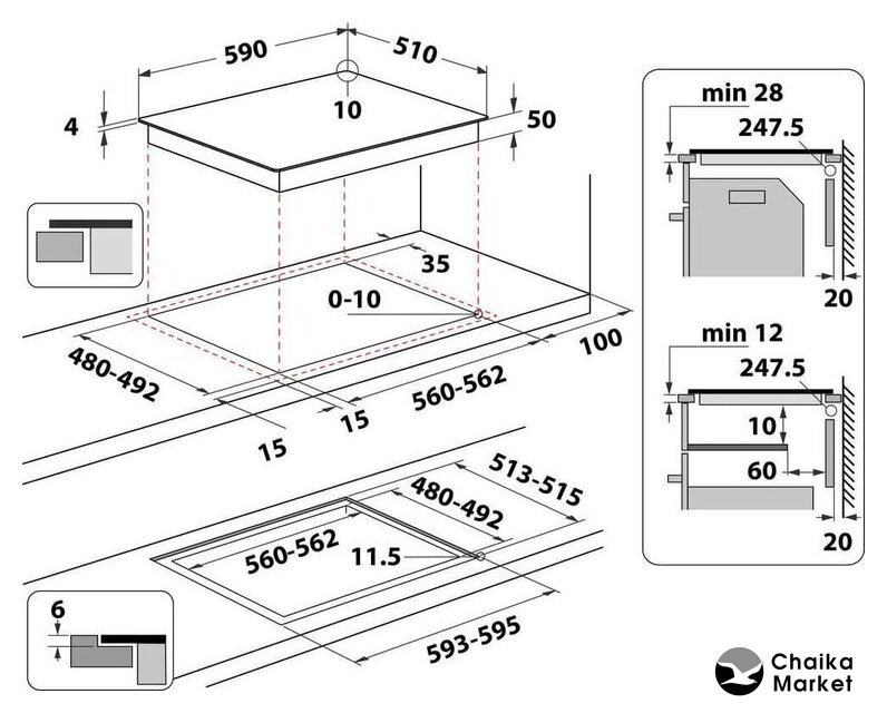 индукционная на 4 конфорки, cтеклокерамика, мощность: 6600 Вт, независимая установка, размеры (ШхГ): 59.2x52.2 см