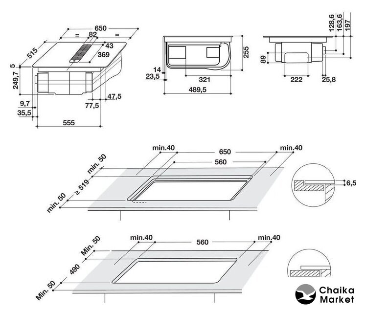 индукционная на 6 конфорок, cтеклокерамика, мощность: 7400 Вт, независимая установка, размеры (ШхГ): 80x51 см