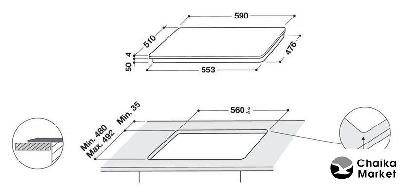 индукционная на 4 конфорки, cтеклокерамика, мощность: 7400 Вт, независимая установка, размеры (ШхГ): 59x52 см