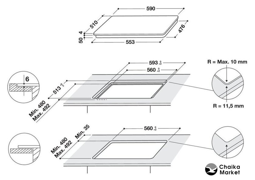 индукционная на 4 конфорки, cтеклокерамика, независимая установка, размеры (ШхГ): 59x51 см