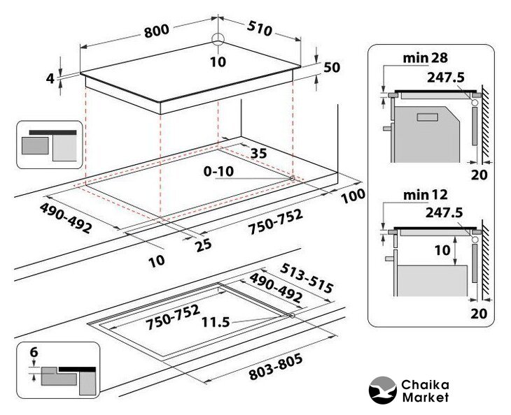 индукционная на 4 конфорки, cтеклокерамика, мощность: 8300 Вт, автоматика закипания, независимая установка, размеры (ШхГ): 78x52 см