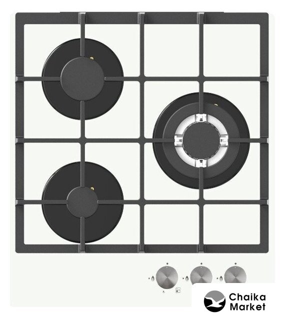 газовая на 3 конфорки, закаленное стекло, мощность: 6200 Вт, автоматический электроподжиг, газ-контроль, решетки: чугун, независимая установка, размеры (ШхГ): 45x51 см
