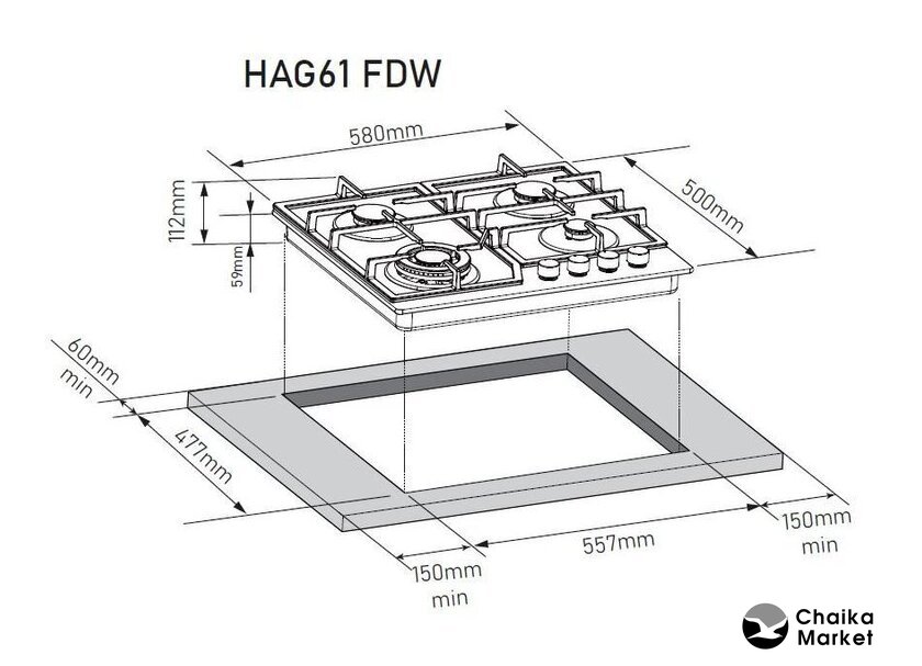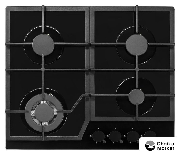 газовая на 4 конфорки, закаленное стекло, мощность: 7700 Вт, автоматический электроподжиг, газ-контроль, решетки: чугун, независимая установка, размеры (ШхГ): 60x52.5 см