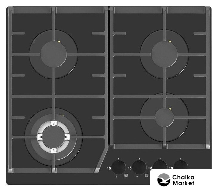 газовая на 4 конфорки, закаленное стекло, мощность: 9100 Вт, автоматический электроподжиг, газ-контроль, решетки: чугун, независимая установка, размеры (ШхГ): 59x51.5 см