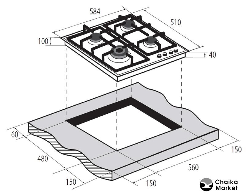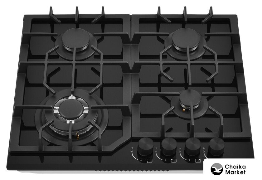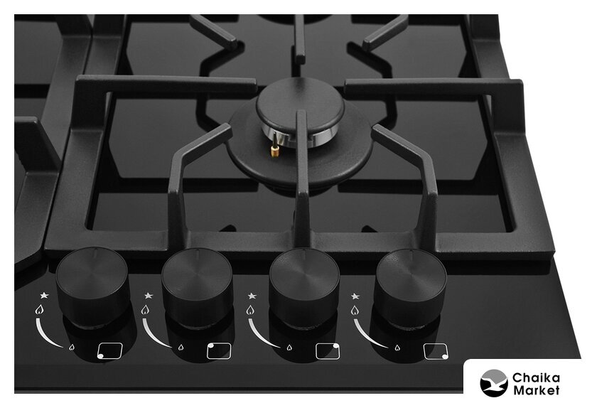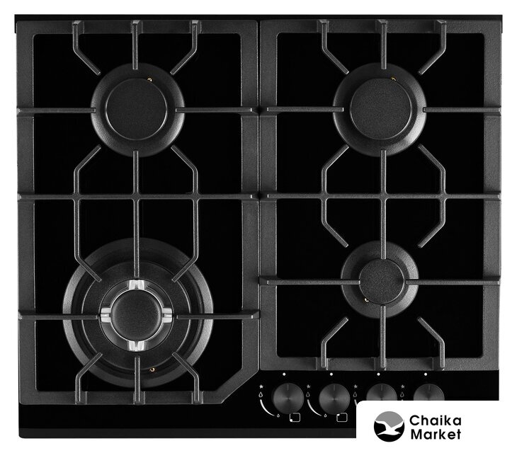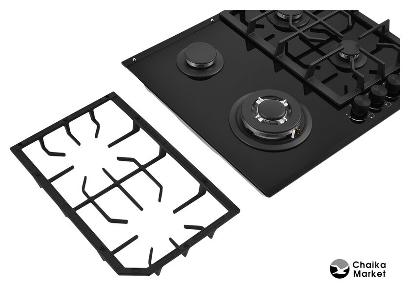 газовая на 4 конфорки, закаленное стекло, мощность: 8200 Вт, автоматический электроподжиг, газ-контроль, решетки: чугун, независимая установка, размеры (ШхГ): 59x51.5 см