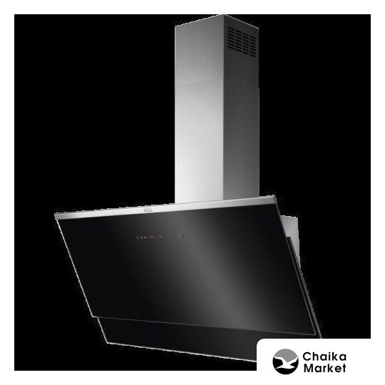 конструкция наклонная, монтаж настенный, ширина 55 см, управление электронное/кнопочное, производительность вытяжки 500 м³/ч, цвет нержавеющая сталь/черный