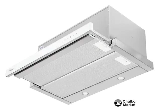 конструкция наклонная, монтаж настенный, ширина 59.5 см, управление сенсорное, производительность мотора 710 м³/ч, цвет белый