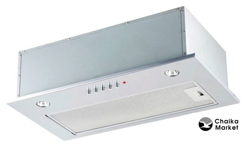 конструкция скрытая, монтаж для встраивания, ширина 52 см, управление механическое/кнопочное, производительность мотора 1000 м³/ч, цвет нержавеющая сталь