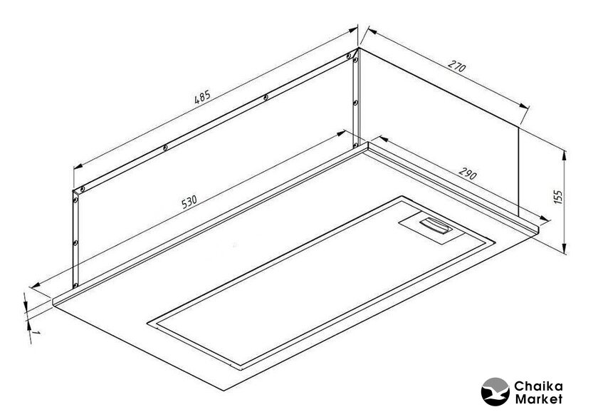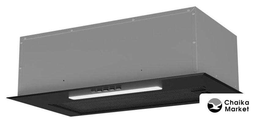 конструкция скрытая, монтаж для встраивания, ширина 59.8 см, управление механическое/кнопочное, производительность мотора 850 м³/ч, цвет нержавеющая сталь