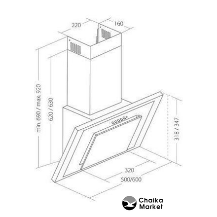 конструкция телескопическая, монтаж для встраивания, ширина 60 см, управление механическое/кнопочное, производительность мотора 850 м³/ч, цвет белый