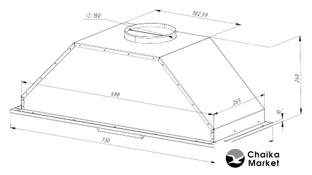 конструкция наклонная, монтаж настенный, ширина 59.5 см, управление электронное/кнопочное, производительность мотора 1200 м³/ч, цвет нержавеющая сталь/черный