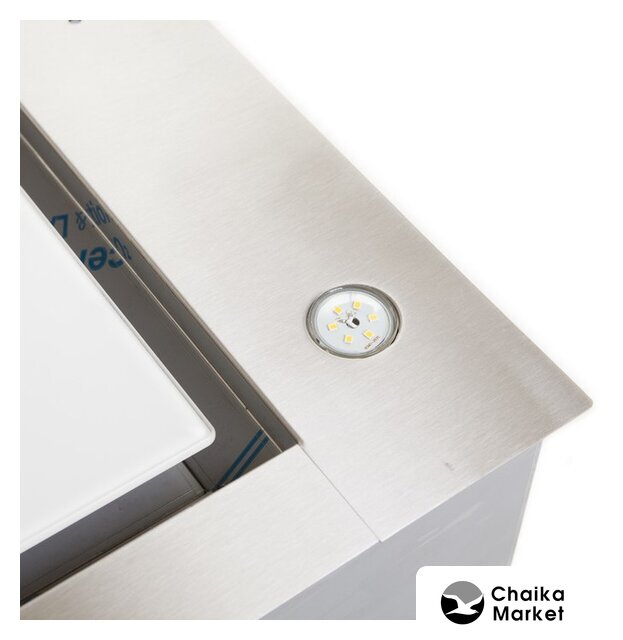 конструкция Т-образная, монтаж островной, ширина 89.7 см, управление сенсорное, производительность мотора 850 м³/ч, цвет нержавеющая сталь/черный