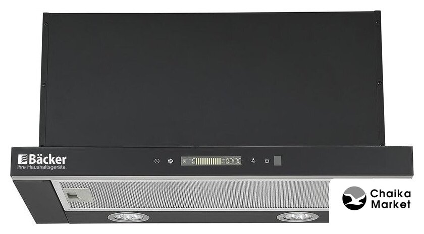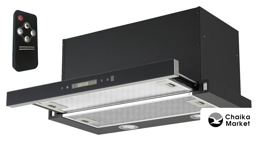 конструкция наклонная, монтаж настенный, ширина 60 см, управление сенсорное, производительность мотора 850 м³/ч, цвет черный