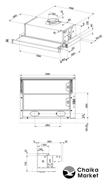 конструкция телескопическая, монтаж для встраивания, управление механическое, ширина 60 см