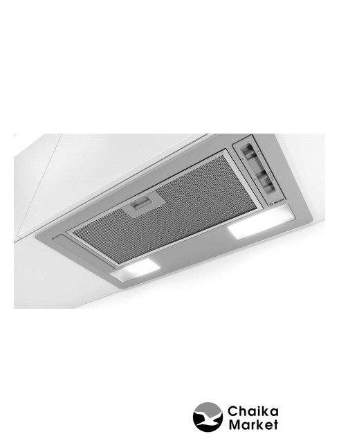 конструкция скрытая, монтаж для встраивания, ширина 59.8 см, управление механическое/кнопочное, производительность мотора 1050 м³/ч, цвет белый