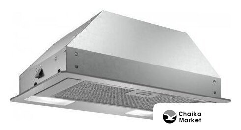 конструкция телескопическая, монтаж для встраивания, ширина 59.8 см, управление механическое/кнопочное, производительность вытяжки 336 м³/ч, производительность мотора 650 м³/ч, цвет нержавеющая сталь/серый