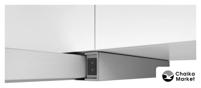 конструкция наклонная, монтаж настенный, ширина 69.8 см, управление сенсорное, производительность вытяжки 410 м³/ч, производительность мотора 460 м³/ч, цвет белый